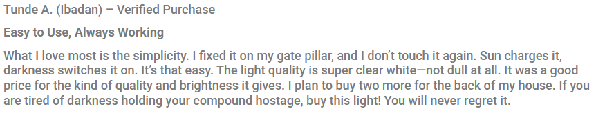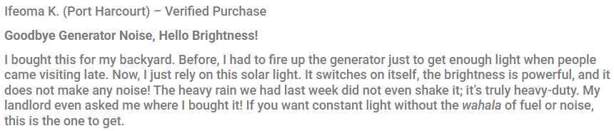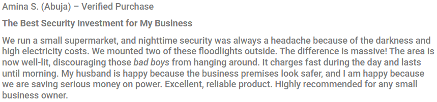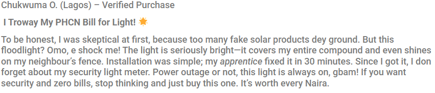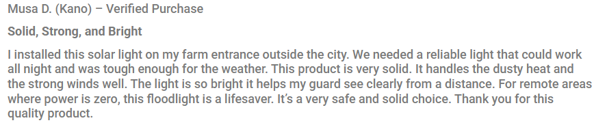 100% Free Power: Because it runs completely on the sun’s energy, you get maximum brightness without adding one Naira to your electricity bill. Say goodbye to high commercial light bills forever!